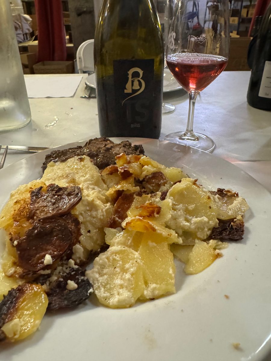 2023 Domaine les Béates, LOU Misto, Vin de France: Retail: 16€. Ugni blanc, Vermentino, Clairette, Grenache Blanc, Grenache Noir, Counoise. “Misto” means “mixed” and the way I understand the blend, a third is from red grapes (blanc de noirs), crushed and aged in terra cotta, another third is straight to press and vinified in stainless steel, and the last third remains on the skins for a month and aged in a concrete egg (orange wine). Certainly quite weighty and complex with layers of flavor and complexity with nice pear and melon. Good balance. Tasty. Excellent. 91 Points.