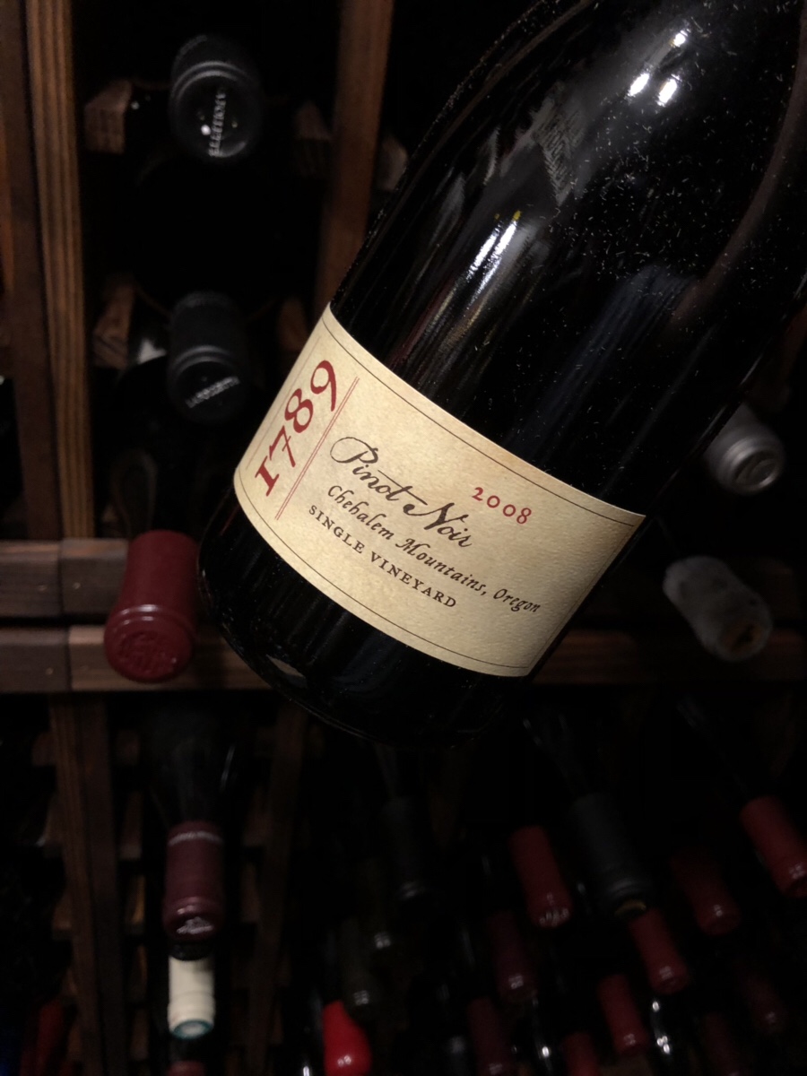 2008 1789 Wines Pinot Noir Single Vineyard, Chehalem Mountains, Willamette Valley, OR: Retail $48. Heavy Bottle (671g; 23.6oz). Under cork. While most of what I wrote for the last bottle (no, not that Last Bottle) I consumed in 2022 remains true, this wine has clearly aged since I popped the previous bottle. A bit more stewed, perhaps, and the tannins are fully integrated, but this is still Outstanding with oodles of red and dark fruit, plenty of acidity, and endless verve. Bravo. 93 Points.