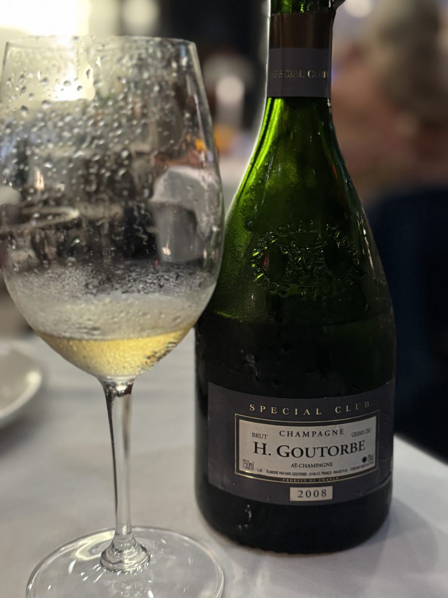 WINE OF THE WEEK: As even the casual observer of this post can see, we drink more than our fair share of champagne. We do not drink a ton of vintage champagne, however, for two rather simple reasons. One, vintage champagne is roughly only about 10-20% of the region’s production, making it somewhat scarce; and two, since it is rather scarce, it also is rather expensive. Still, we make an exception every now and again as we did with this week’s Wine of the Week, the 2008 Henri Goutorbe Champagne Grand Cru Special Club. A lovely wine for a special occasion.