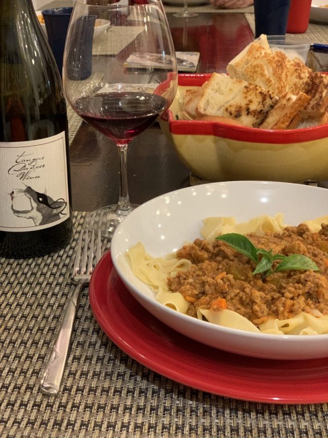 While Houston is known for its great restaurant scene, since the pandemic I have been cooking at home a lot more. This is my Bolognese with homemade tagliatelle (and garlic bread, natch). The Tongue Dancer “The Sly One” Pinot Noir was sublime.