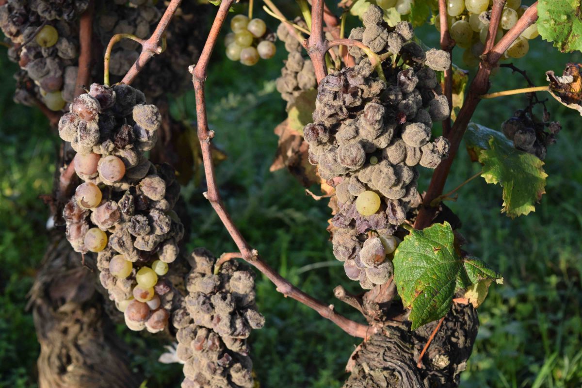 “Beautifully rotted” Sémillon. Many of the sweet wines of Bordeaux come from grapes “infected” by Botrytis, a fungus that desiccates the grapes, concentrating the sugars.