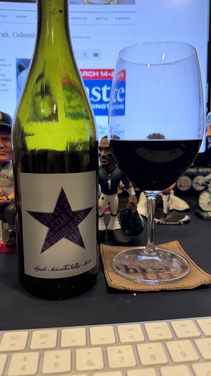 WINE OF THE WEEK: It was one of those nights. We had popped a few bottles of wine when some friends came over and I was huddled over my computer after they lest, writing tasting notes on the wines we just had. I used to write the notes contemporaneously, but I found that rather rude and it detracted from the evening. Now, I try to squirrel away the last bit of wine in every bottle so I can hopefully wax poetically while I follow George Thorogood’s advice. While many wines stood out this week, I opted for the 2013 Purple Star Syrah as this week’s Wine of the Week, since a) it was delicious, and b) Amy and Kyle Johnson are just really fantastic people.